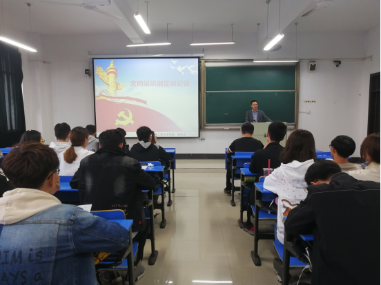 在汇文楼D205举行“党的组织制度和纪律”党课培训,校党委组织部副部长路壮志主讲,学院第38期入党积极分子学员到场聆听学习。