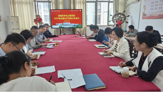在汇文楼A302会议室召开2025年全面从严治党工作会议,院领导班子成员、党委委员、纪委委员、党支部书记、系室主任、组织员参加会议,会议由院党委书记王军主持。
