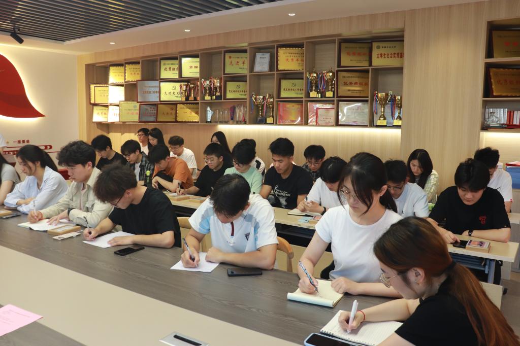 在汇文楼A502召开“共话团学情,共筑同心圆”新老团学骨干交流会暨“青马工程”培训主题课程。院党委副书记、纪委书记、副院长赵颖,院团委书记赵玉婷,院团委副书记李军慧,院团委副书记焦朋庆,院团委副书记曹宇,第十二届、十三届团学组织各部门负责人参加本次交流会。