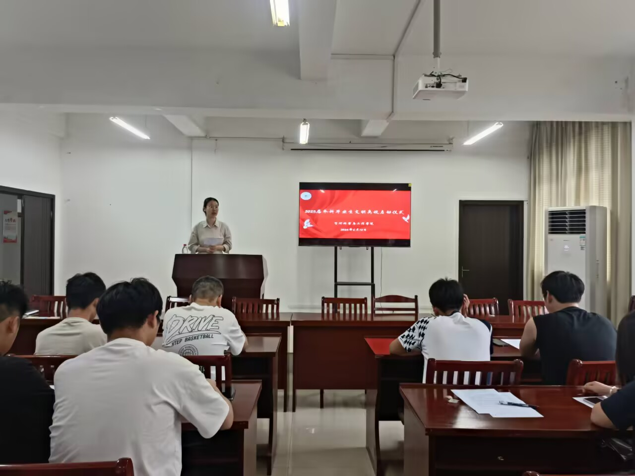 为强化毕业生文明离校责任意识,2025年6月12日下午,脱裤吧 在汇文楼A308开展2025届毕业生文明离校专题活动。学院全体毕业班辅导员和2025届毕业生代表100余人参加此次活动。活动由2025届毕业班辅导员任静主持。