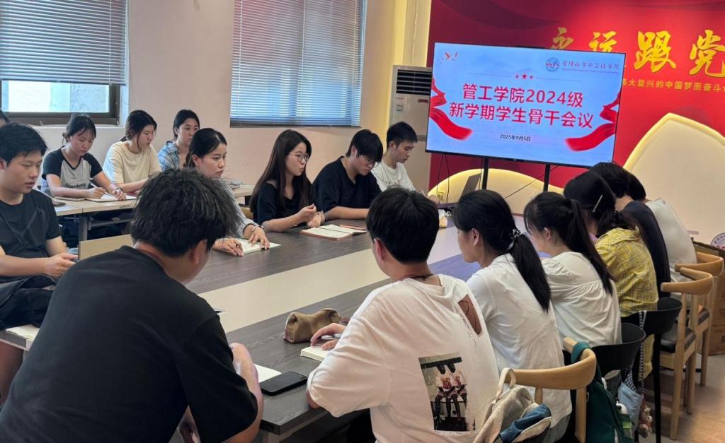 于汇文楼A502召开2024级“总结过去、规划未来”班级学生骨干培训会,会议由2024级辅导员李军慧、孙如梦主持,2024级全体班级学生骨干参与。