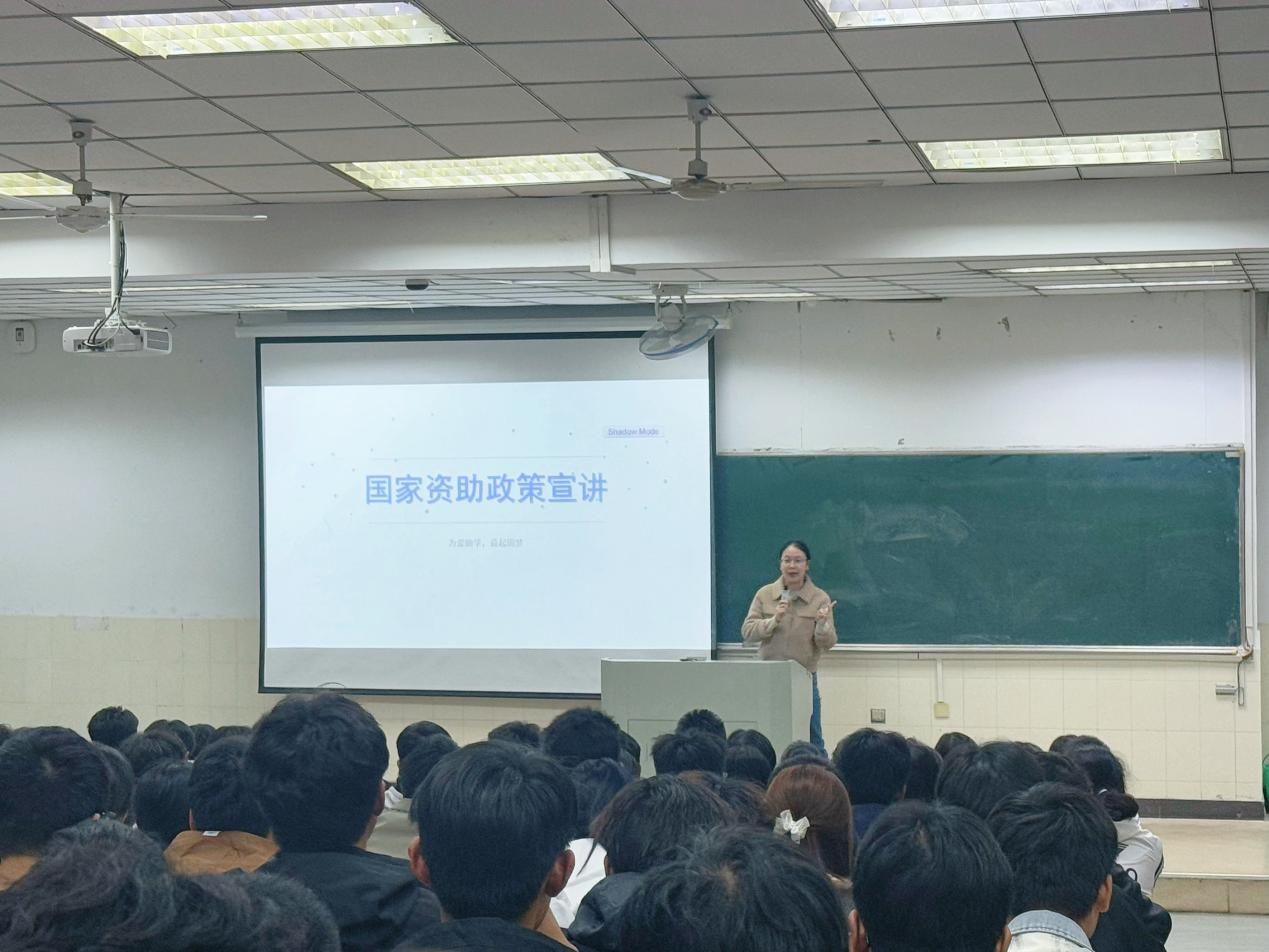 为助力学子无忧求学,脱裤吧 于10月22日在秀山校区阶教201举办“国家资助政策宣讲会”,由新生辅导员任静主讲,全体2025级新生参加。