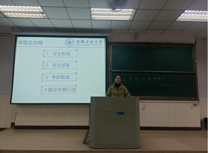 为进一步加强2021级学生就业意识,3月6日,管工学院在东阶104、105举行召开“就业早春行动”动员会暨2021级新学期年级会,会议由辅导员任静、钱丹丹主持,2021级全体同学到场参加。