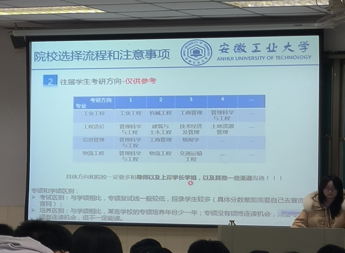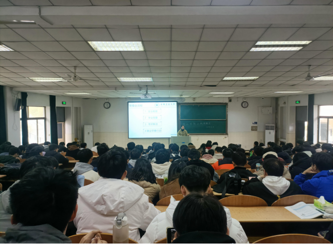 会上,钱丹丹以考研解读为主题,在考研择校、备考规划和心态调整等方面为备考学生解疑答惑,鼓励学生们摆正心态,制定详细的考研计划,注重交流与合作,全面提升备考效率。在求职方面,钱丹丹提醒同学们要做好心理调整、简历美化、面试、信息搜集、和能力匹配五大准备。最后强调未来规划应秉持“多条腿走路”的原则,并向同学们介绍了西部计划、士兵计划、研支团等就业政策。任静重点围绕人身安全、生活安全、财产安全、防诈骗、电动车管理等方面展开安全教育,提醒学生警惕各类“陷阱”;并从课程学分角度督促学生关注自身情况,尽早尽早完成相关学业要求。