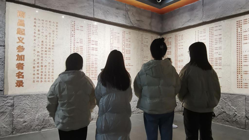 南昌八一起义纪念馆中,陈列着南昌起义时期的文物和珍贵的历史资料,生动再现了那段波澜壮阔的历史。实践队员走进纪念馆,他们震撼于眼前的南昌起义总指挥部旧址、贺龙指挥部旧址、叶挺指挥部旧址、朱德军官教育团旧址和朱德南昌旧居五处革命旧址。这些旧址不禁让队员们回想起革命先烈一路披荆斩棘的峥嵘岁月,更看到了一代代青年的红色传承。