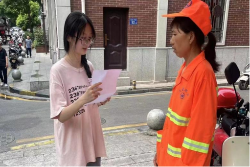 图为实践队员线下进行问卷调查。中国青年网通讯员 王倩蕊 摄