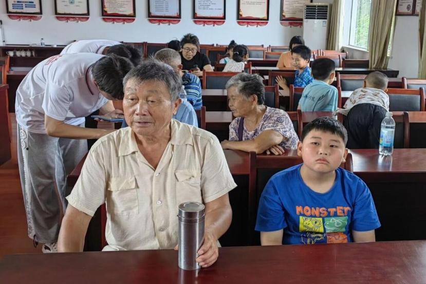 图为村委会会议室中准备教学交接工作的孩子和家长。中国青年网通讯员汪晓宇 摄