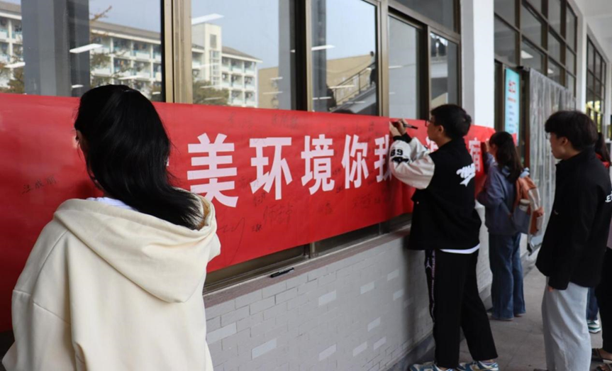 本次签名活动的主题为“优美环境你我创,温馨环境齐共享”,铿锵有力的宣传标语引起了学生的关注,他们积极参与,主动在横幅上签下自己的姓名,表示要以实际行动创建文明、整洁、和谐的寝室环境,愿为文明宿舍创建贡献自己的一份力量,充分展示了学院师生创建文明宿舍,加强安全和谐建设的决心和信心。签名过程中,工作人员还从宿舍安全、宿舍文化、宿舍卫生等角度引导大家如何创建文明宿舍。
