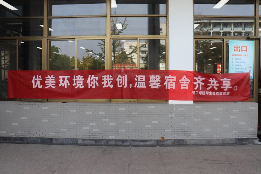 为进一步增强学生宿舍安全意识,引导学生共同创造文明和谐的宿舍生活环境,营造良好的宿舍氛围,10月23日中午,管工学院于秀山校区八食堂门口开展了文明宿舍横幅签名活动,全院学生积极参加。