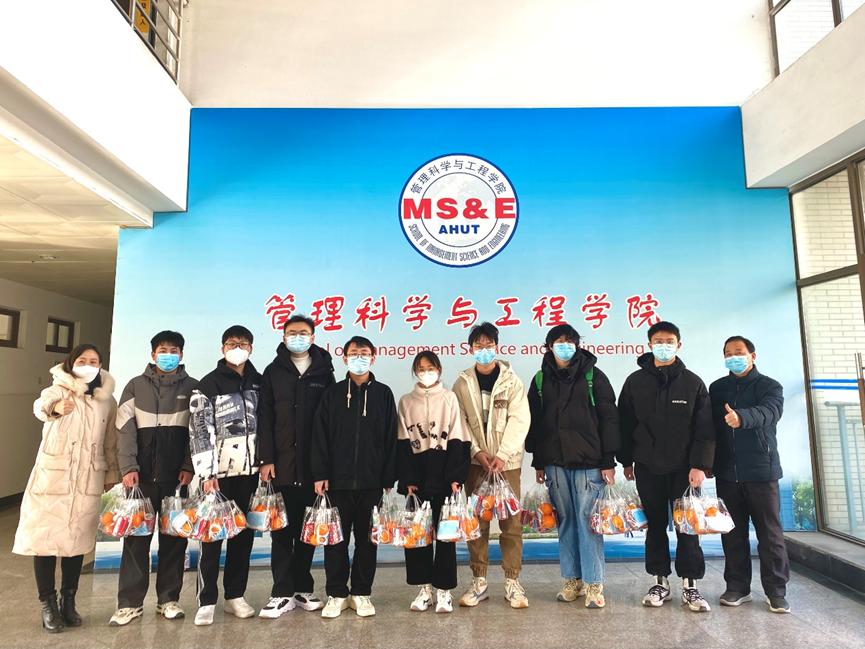 考研学子坚定信心,缓解压力,12月22日,管工学院党委书记汪春胜、党委副书记赵颖以及毕业班辅导员等共同为同学们送上精心准备的“考研加油包”,慰问考研学子,为同学们加油鼓劲。