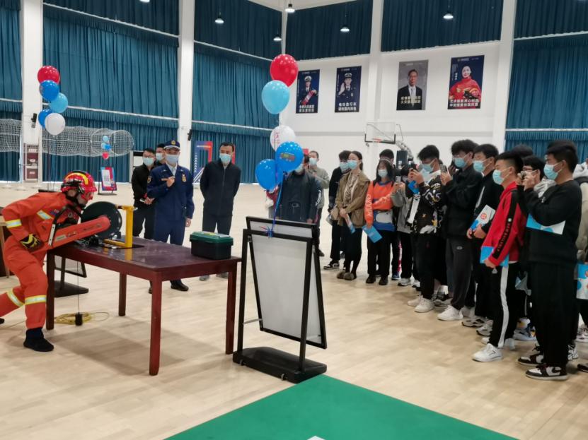 在“变形金刚”与“大材消用”环节中,消防员向学生介绍了5种类型的应急消防车及车内消防设备的应用;在消防员的指导下,学生们试穿消防服,用VR眼镜体验高空无人机视角。在“鞭辟入里”活动中,消防员手持30公斤重锯去锯开鸡蛋且不伤蛋白,技艺精湛,令人钦佩;陈列馆中还展示了各具特色的消防服,如:重型防化服、生化防护服、隔热服等,消防员详尽地介绍了消防服的功能及用途,让学生对消防工作有了更加全面的认识;在“破窗行动”环节中, 学生们亲身体验消防基础设施,学习正确使用灭火器的方法。