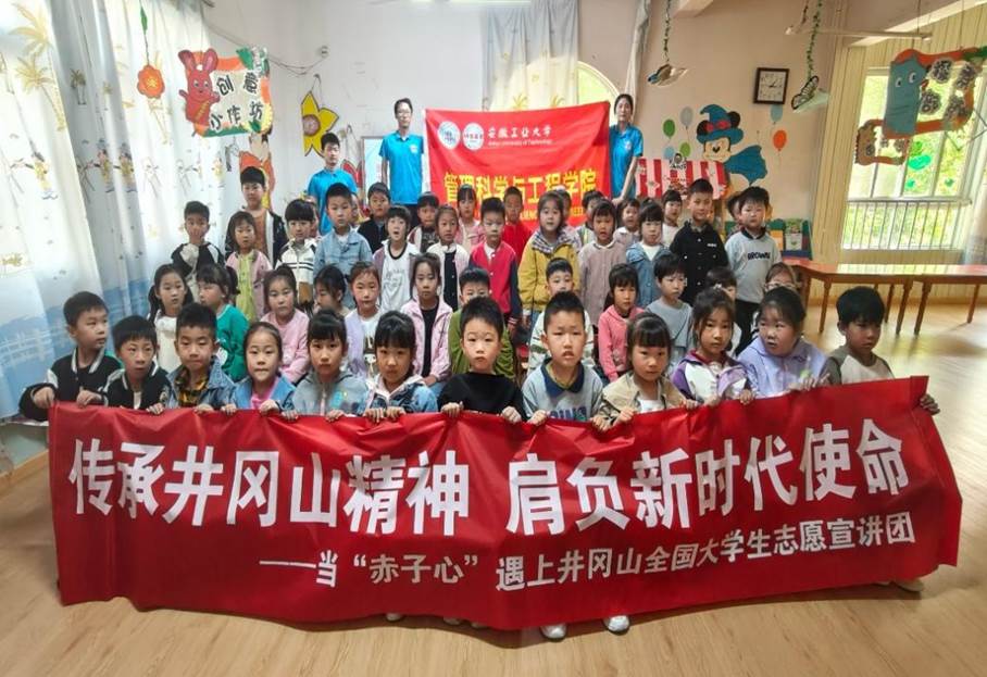 为全面学习贯彻党的二十大精神,落实“强国复兴有我”群众性主题宣传教育活动相关要求,增强实现中华民族伟大复兴的精神力量。4月29日下午,管工学院当”赤子心”遇上井冈山全国大学生志愿宣讲团走进花山区宝贝童年幼儿园开展“传承井冈山精神、肩负新时代使命”宣讲活动。