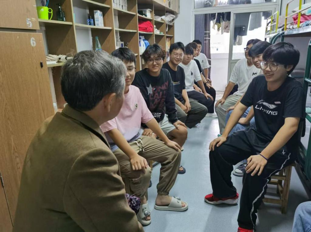 为进一步加强师生间交流,关爱学生成长,使广大新生尽快适应大学生活,10月16日下午,校关工委退休教师代表蔡保兴走进管工学院2024级新生宿舍,与部分新生们进行了热烈交谈。