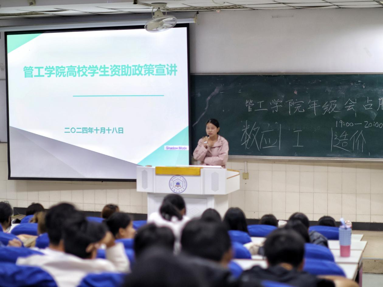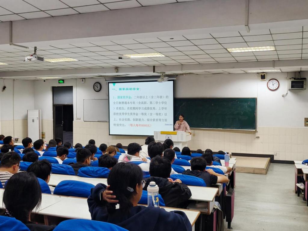 于阶教102开展资助政策宣讲“两节课”活动,2024级辅导员李军慧宣讲,2024级全体新生参与。