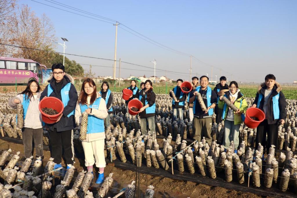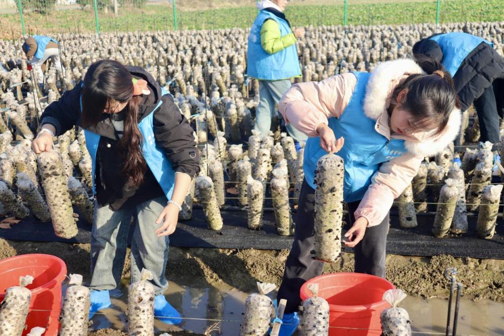 在兴圩村种植专业合作社,驻村第一书记黄宁辉向学生们介绍了木耳产业种植、开心菜园项目建设在助力乡村振兴,帮助农民增收方面的效用发挥,加深同学们对农村农事的了解。劳动实践中,师生党员一同走进田野,捧起菌棒,与当地村民共同参与了木耳、蔬菜的采摘与浇灌工作,在田间地头上了一堂生动的劳动教育实践课。