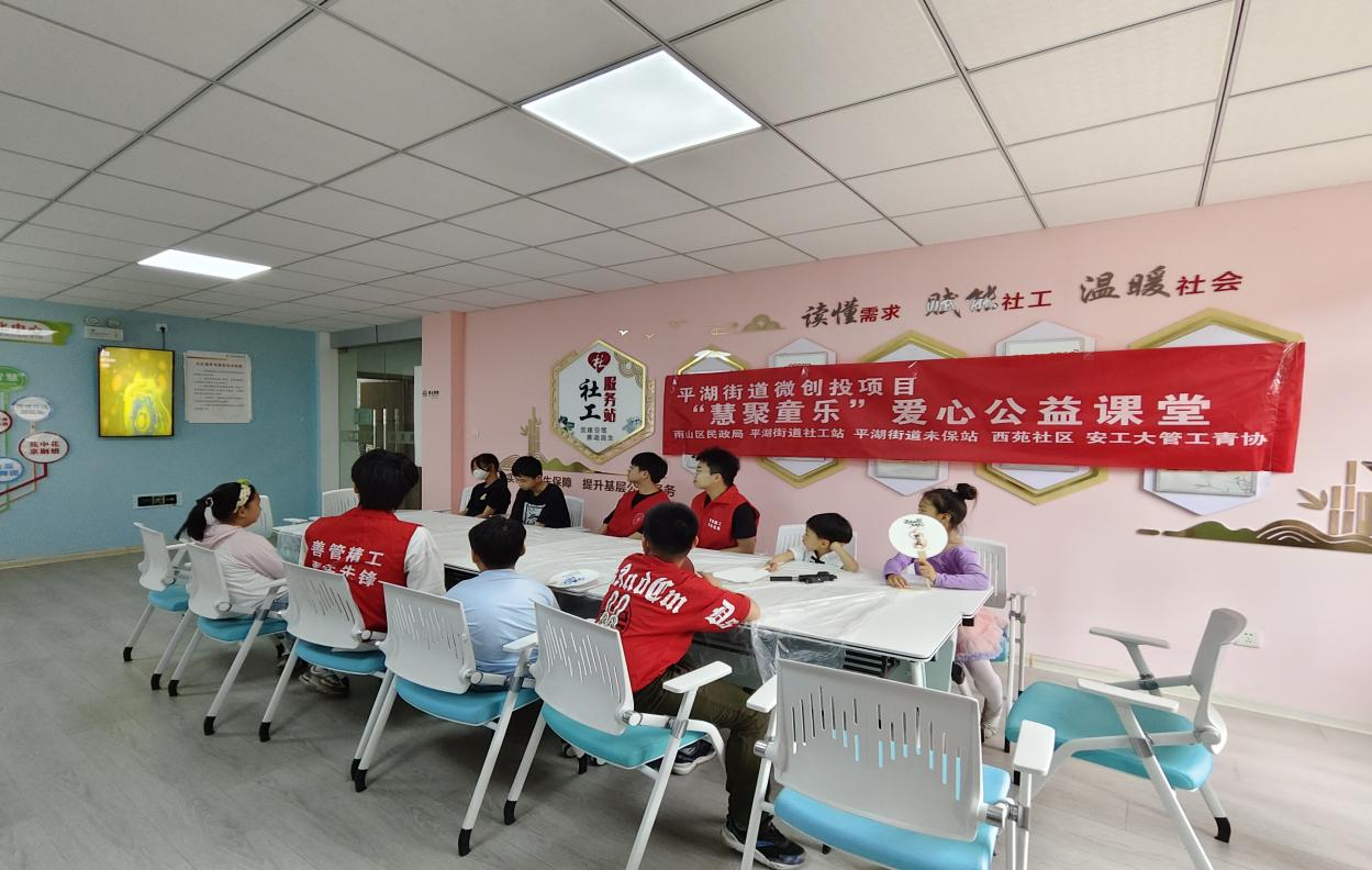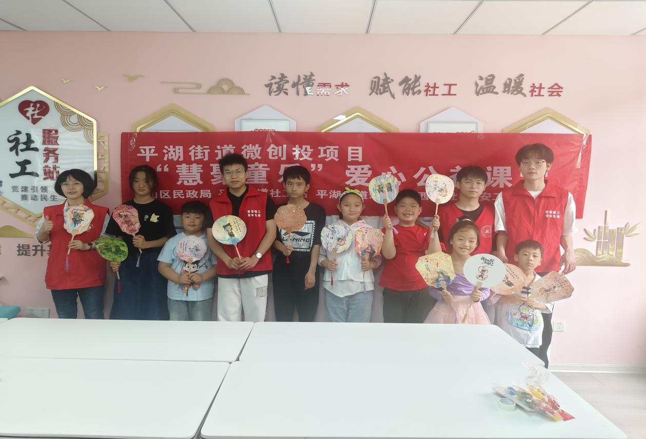 “青青星火,汇聚童心”——守护童年志愿服务队赴雨山区平湖街道社工站开展“漆韵扇语”美育志愿服务活动。