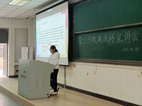 为进一步培养新时代大学生的创新意识、创新思维和创新能力,增强对“挑战杯”竞赛的认知,10月16日下午,管工学院科技竞赛部在东区阶教104举办了2024年第十一届“挑战杯”大学生创业计划竞赛宣讲会。竞赛部张林溪进行了比赛介绍,各年级学生代表300多人参与了本次会议。