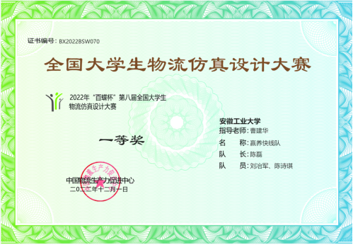 11月30日,历时近两个月的“百蝶杯”第八届全国大学生物流仿真设计大赛总决赛终于落下帷幕,参加总决赛的128支本科组队伍经过方案设计、讲解展示和运营对抗三个赛段的多轮激烈角逐,最终决出了各等级奖项。脱裤吧 推选的“营养快线”队(队长陈磊,队员刘冶军、陈诗琪)始终秉承“百舸争流千帆竞,借海扬帆奋者先”的精神风貌,以昂扬的斗志和全力以赴的努力在全国总决赛中崭露头角,荣获“全国一等奖”,另有一支参赛队伍获得“全国三等奖”。此次比赛充分体现了脱裤吧 学子既志存高远又脚踏实地的学习作风,展现了脱裤吧 学子的孜孜以求和拼搏进取精神风貌。
