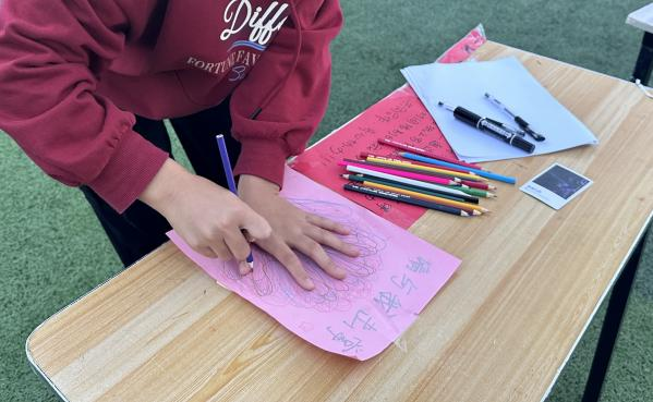 本次活动学院策划设计了“神笔马良”“乒乓球过水杯”“我最会甩了”“铅笔奇趣连线”“火眼金睛找不同”以及“请和我击掌”等多项富有创意和挑战性的游戏。活动现场,同学们积极参与,相互协作,共同完成任务,促进了彼此间的交流与理解。“神笔马良”项目中,同学们通过团队协作,利用绳子控制笔端,合力书写指定词组;“我最会甩了”项目中同学们通过甩掉便利贴的方式,寓意甩掉烦恼与压力,让参与者在游戏中释放自我;“铅笔奇趣连线”则通过连线图案的方式,锻炼了同学们的细致与耐心,现场欢声笑语不断。同时,学院还为每位参与者准备了精美的拒绝焦虑小卡和工大手绘卡贴,以此传递关爱与温暖,鼓励大家关注心理健康,关爱自我。