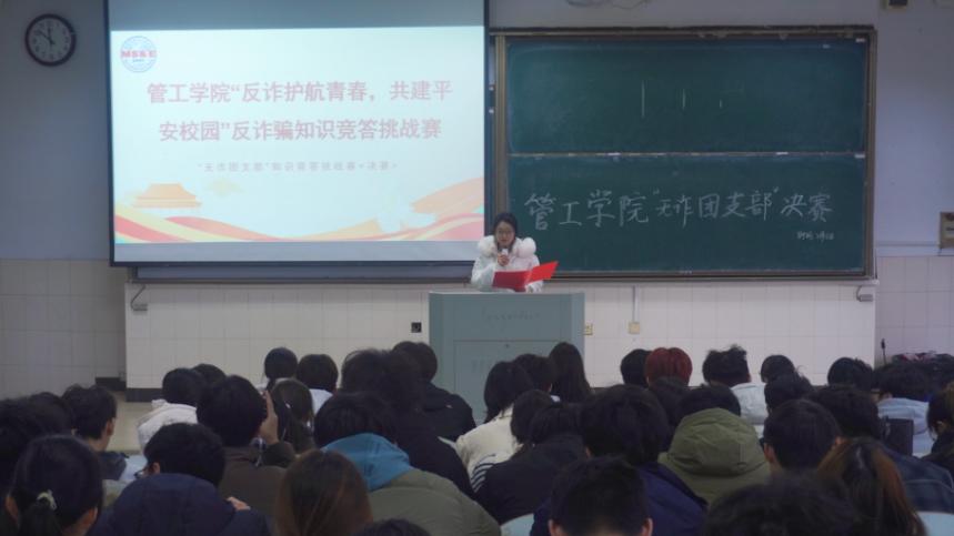 在阶教203举办第二届“无诈团支部”反诈骗知识竞答挑战赛决赛。2025级辅导员李思雨、团委学生会部门相关负责人担任评委,2025级各团支部共120余人参与。