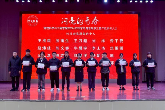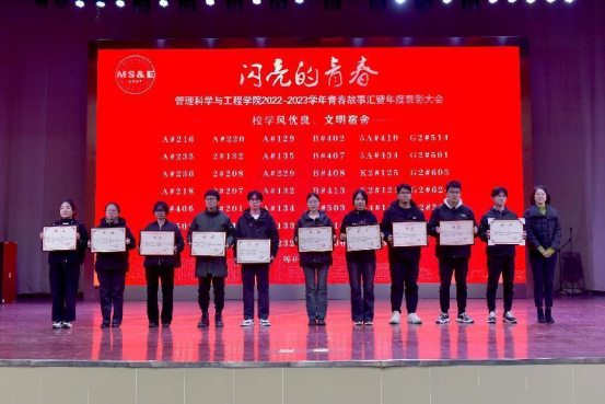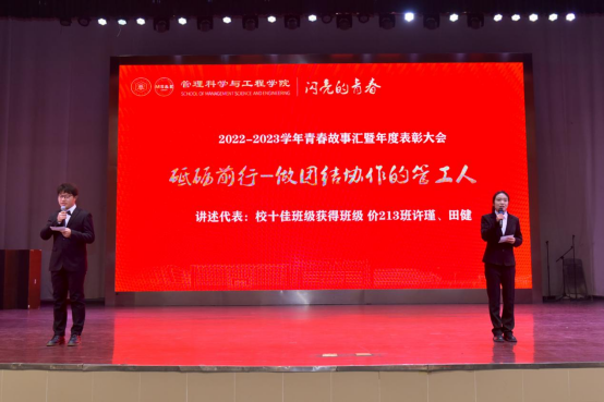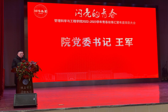 举行2022-2023学年青春故事汇暨年度表彰大会,校党委宣传部副部长、校团委书记王菁、学生工作部(处)部长赵龙、研究生院、团委、教务处等相关职能部门负责人,管工学院党政领导班子、系室主任、教师代表、班主任代表以及全体辅导员、受表彰的先进集体和先进个人及各年级学生代表共400余人参加大会。表彰大会由学院党委副书记、副院长、纪委书记赵颖、2021级辅导员任静、工业工程203班王枫主持。