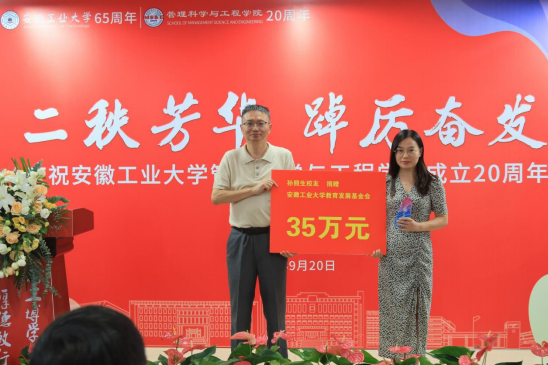 大会在庄严的国歌声中拉开序幕。院长汪和平致欢迎辞,向出席会议的嘉宾表示热烈欢迎,并从学科建设、科研成果、人才培养等方面介绍了学院的发展和建设成果,他表示一批批管工人守望相助、积极创新,铸就了管工学院今日的荣光,学院的发展离不开追梦的老师、追梦的学子以及追梦的校友们。在新起点新征程上,学院将与全体校友、嘉宾团结携手、群策群力,以更加昂扬的精神风貌共筑母校新辉煌。校友代表1991届工商管理专业毕业生安徽华智企业管理顾问有限公司执行董事、管工学院合肥校友会会长李斌回忆了在母校的求学经历和成长感悟。在校生代表工业工程213班李枫代表在校生向学院送上生日的祝福。学院党委书记王军作总结发言,他表示校友是学院宝贵的财富,二十年来学院的发展壮大、师资力量和办学条件快速发展,是管工人用沸腾的热血浇筑的。希望各位校友常回来看看,与学院携手共进,积极为学院的发展贡献智慧与力量。会上,汪和平院长、王军书记分别向安徽夺冠体育科技有限公司董事长2013届校友陈志栋、江苏艺特新能源科技有限公司董事长2006届校友孙照生等颁发了捐赠“特别贡献奖”。据悉,陈志栋、孙照生两位校友累计向学校、学院捐赠75万元。