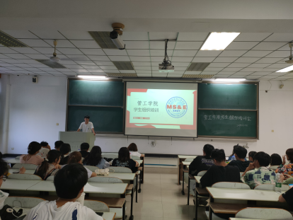 9月25日晚,管工学院于教三南405召开团委学生会骨干组织培训会,会议由学生会负责人吴磊、江文静主持,学院学生会成员到场参加。