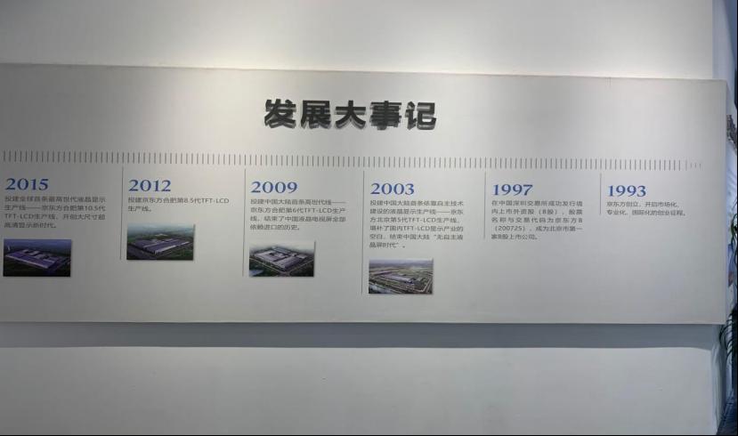 图为合柴1972中陈列的京东方的发展事记。