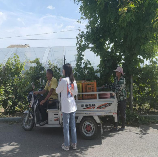 夏日炎炎,但果农们对于葡萄收获的热情不减。实践队员刚到达就看到了许多果农在采摘葡萄进行装箱,为了不打扰他们,队员们选择了一些正在休息的果农进行交谈询问。据果农说,他们所种植的葡萄有的可以直接拿到街上售卖,有的则卖给一些商贩,再通过商贩卖到全国各地,也有一些农户通过政府的扶持,进行线上直播,让更多的外地人可以购买到当地的葡萄。