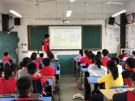 活动开始后,入党积极分子按照既定名单分组前往西湖小学和湖三小学。课上,志愿者围绕“5.8世界红十字日”的主题,向小朋友们介绍了红十字的起源、发展及其性质。接着,志愿者通过解释人道、公正、志愿服务等国际红十字运动七大基本原则,生动形象叙述了一个个关于红十字的小故事,营造了积极活跃的课堂氛围,同时传递了友善博爱、无私奉献的精神。