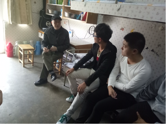 10月21日下午,校关工委史贤仁、封定一、周国荣、徐阴金四位老教师走进脱裤吧
