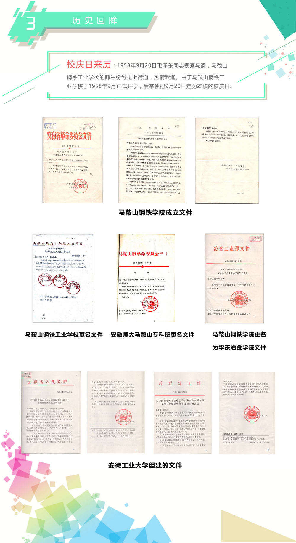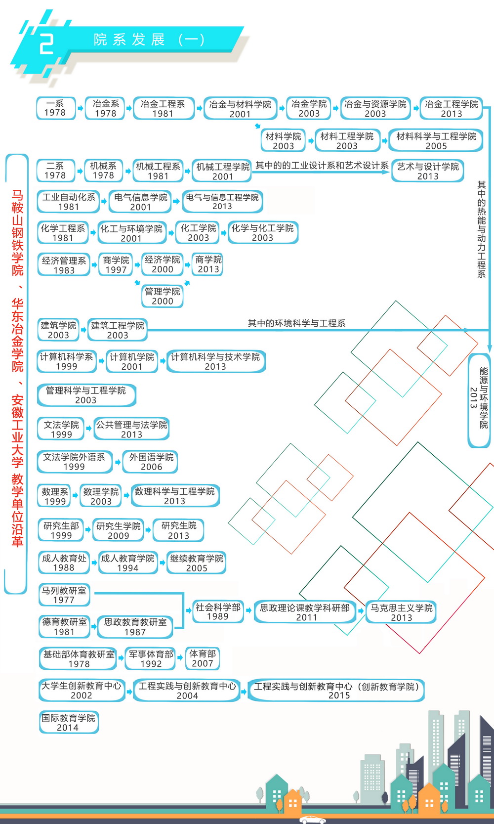 近期,校办档案室通过查阅自1958年至今的有关档案,设计制作出各类图表,为大家梳理出学校及各院系的历史沿革。在本期推出的各类图表中,大家可以看到学校的历次更名、合并及组建情况,也可以了解到学校各时期院系的发展历程。