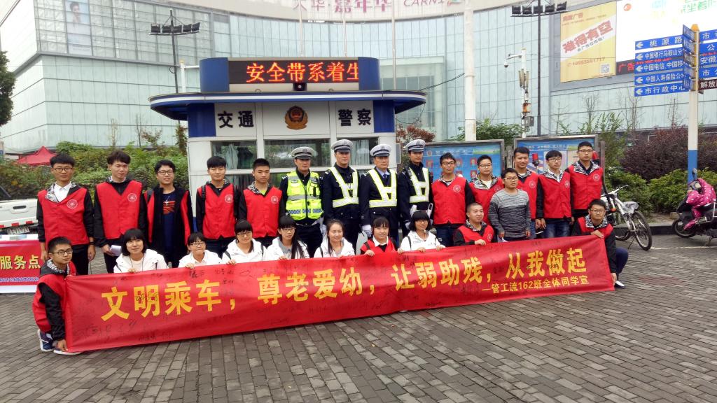 管工学院组织志愿者协助交警花山大队在金鹰路口开展了“文明行车,从我做起”交通安全宣传活动。志愿服务得到了马鞍山交警微博平台的关注报道,交警们为志愿者们“点赞”。