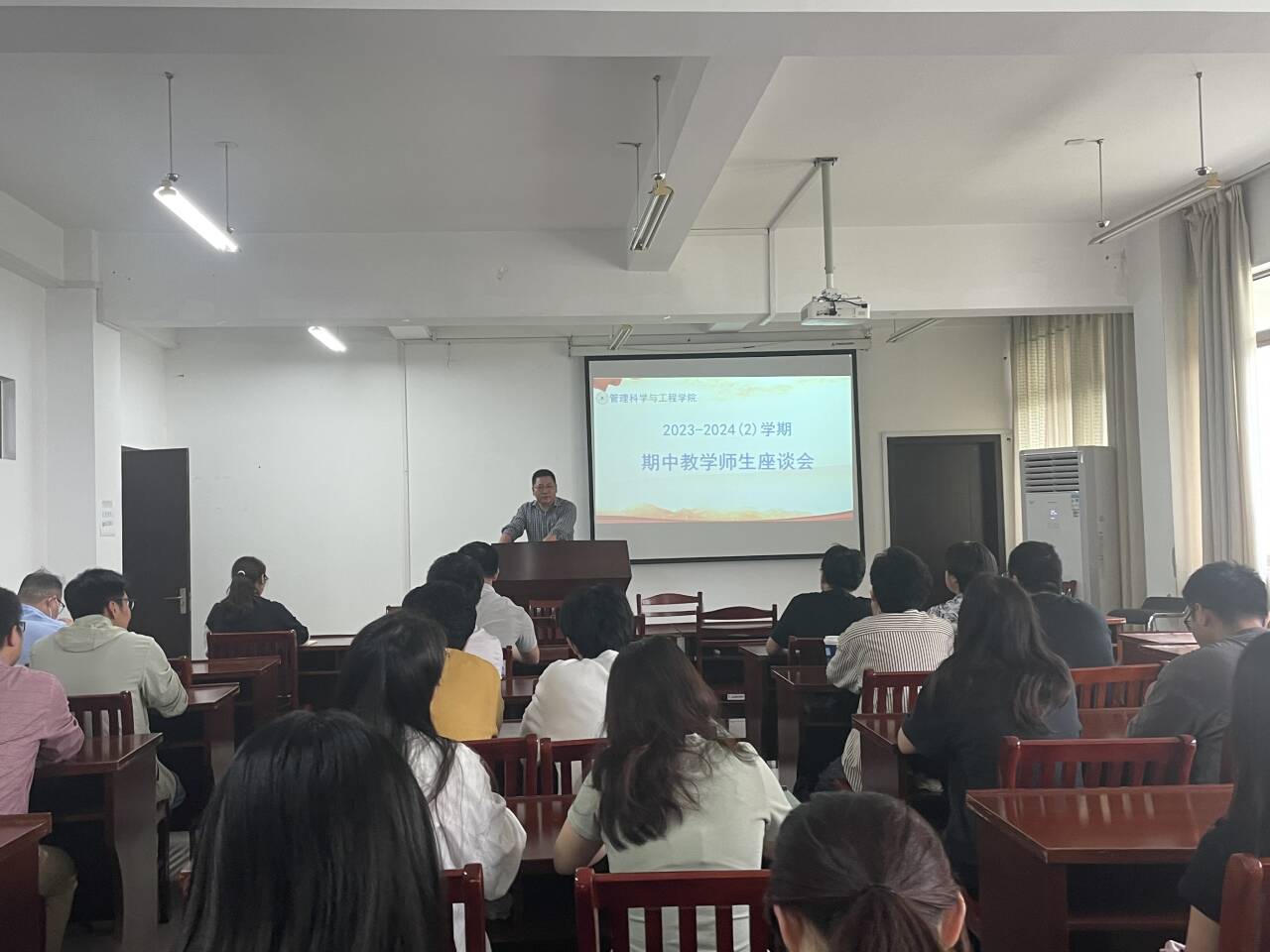 为深入了解本学期教学进展情况和学生学习情况,结合学校期中教学检查工作安排,5月31日下午,管工学院在汇文楼A308召开期中教学师生座谈会。院督导组老师、系室教师代表、各专业班级的30余名同学参加了座谈,会议由张洪亮副院长主持。